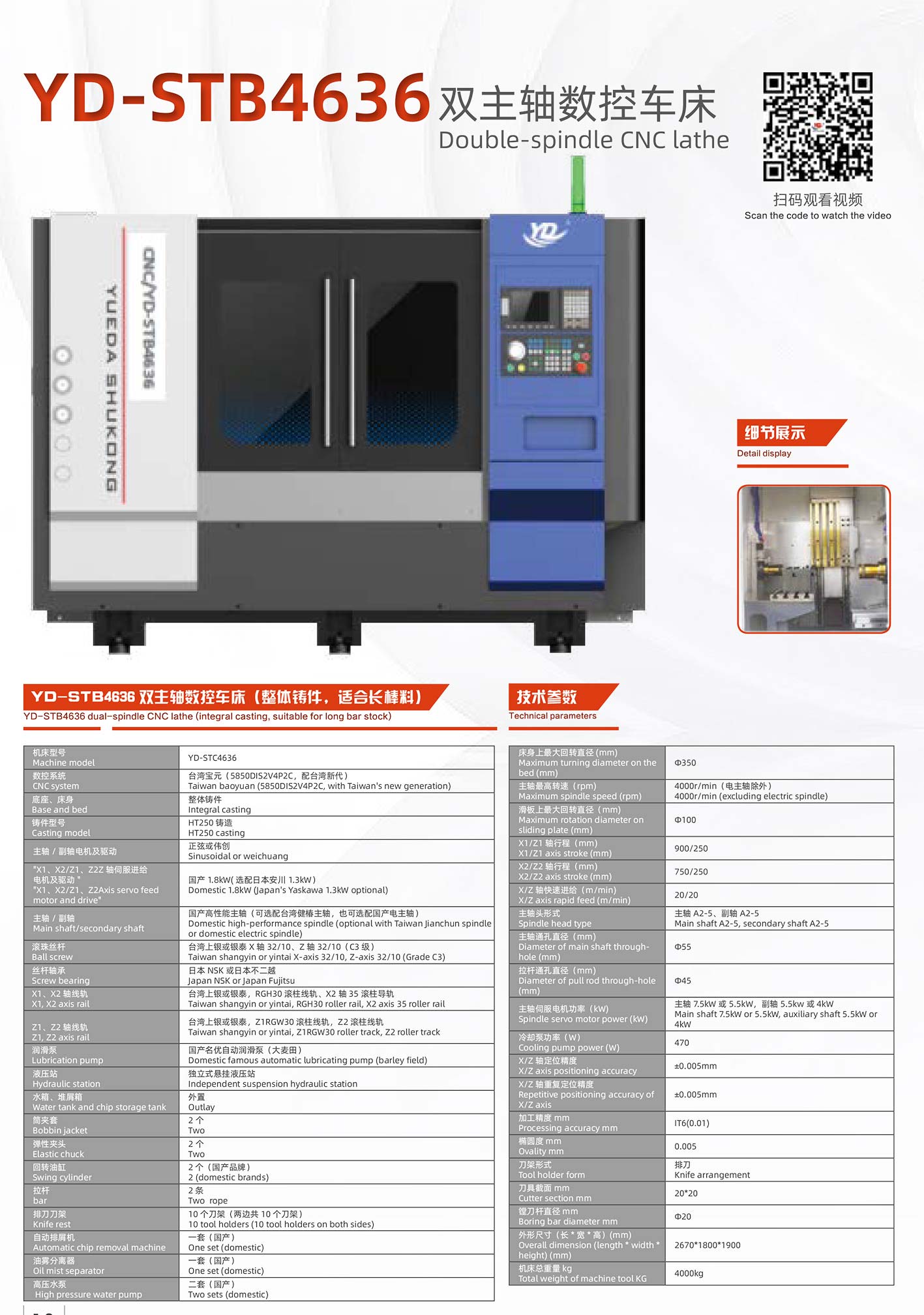 • 產品名稱:STB46型雙軸數控機床